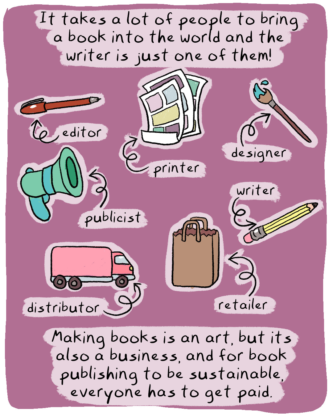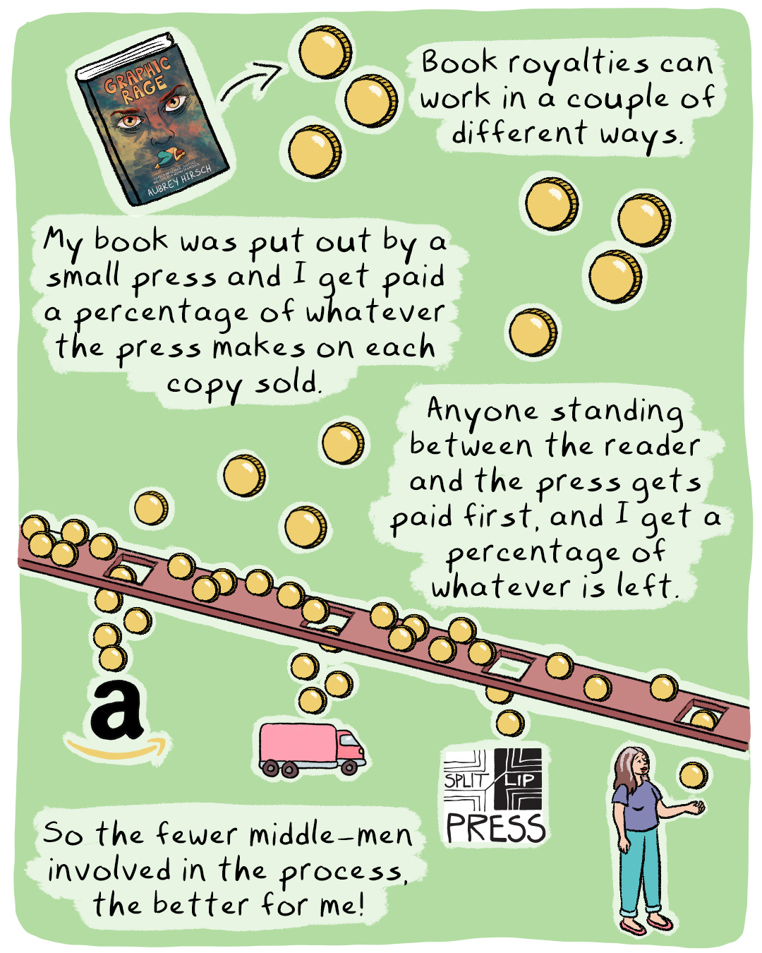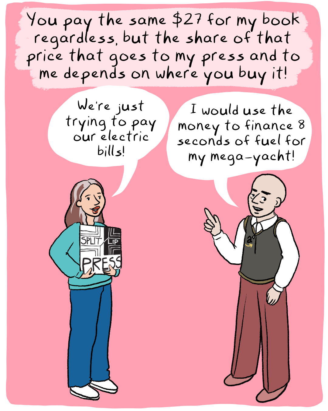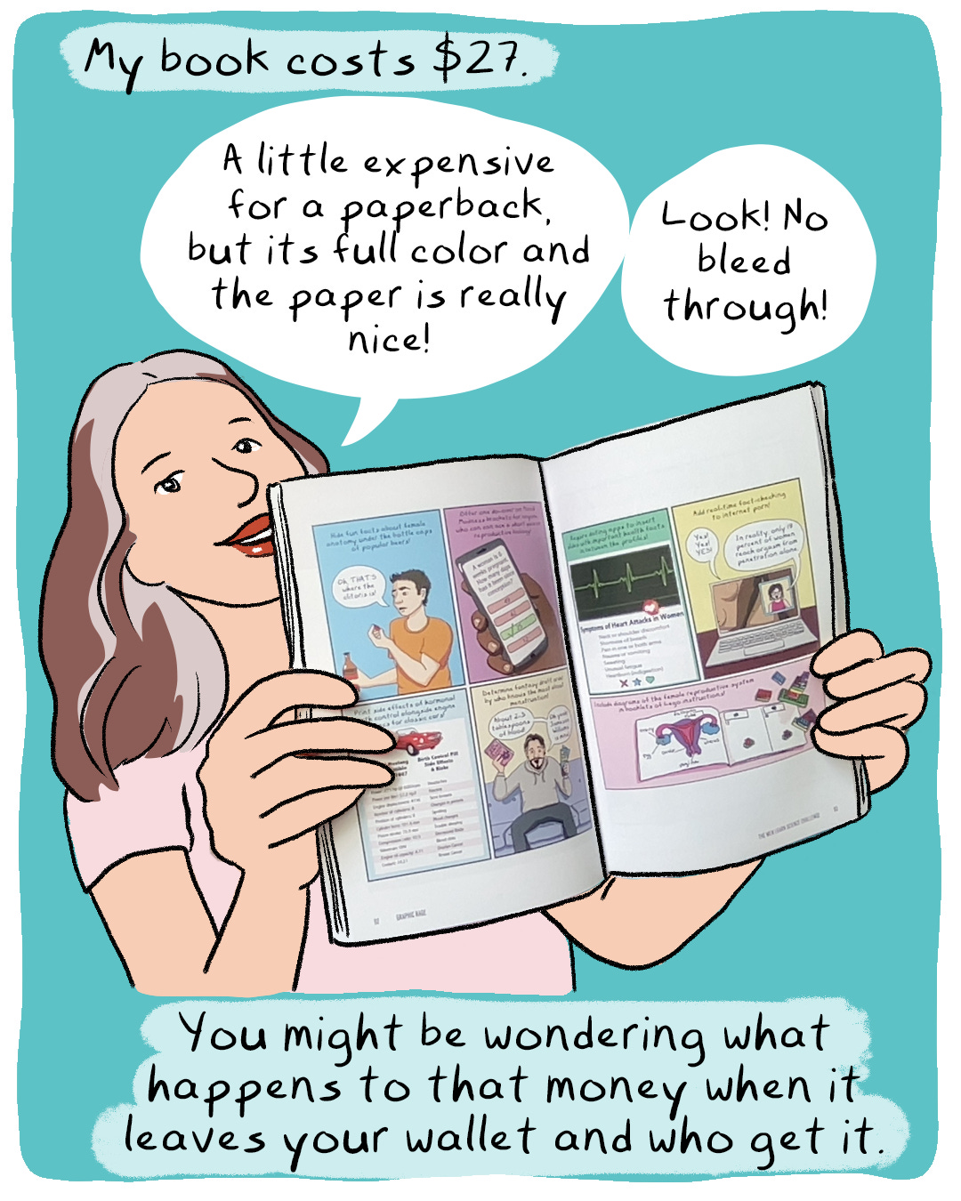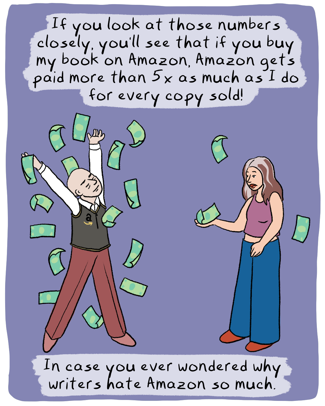 More to come, so stay tuned! But first, a little behind-the-scenes book publishing comic on what it costs to make a book, and how the who-gets-paid-what of it all depends heavily on where you buy it!